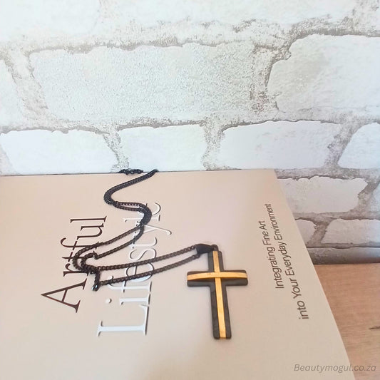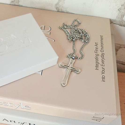 Mens Two-Tone Cross Pendant Necklace, Card and Gift Box Set