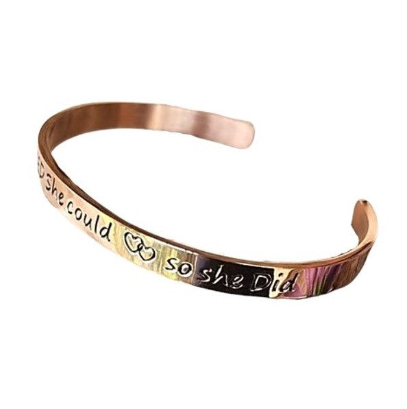 Don't stop Believing that you are powerful with this Rose Gold Motivational "She Believed She Could Bracelet".